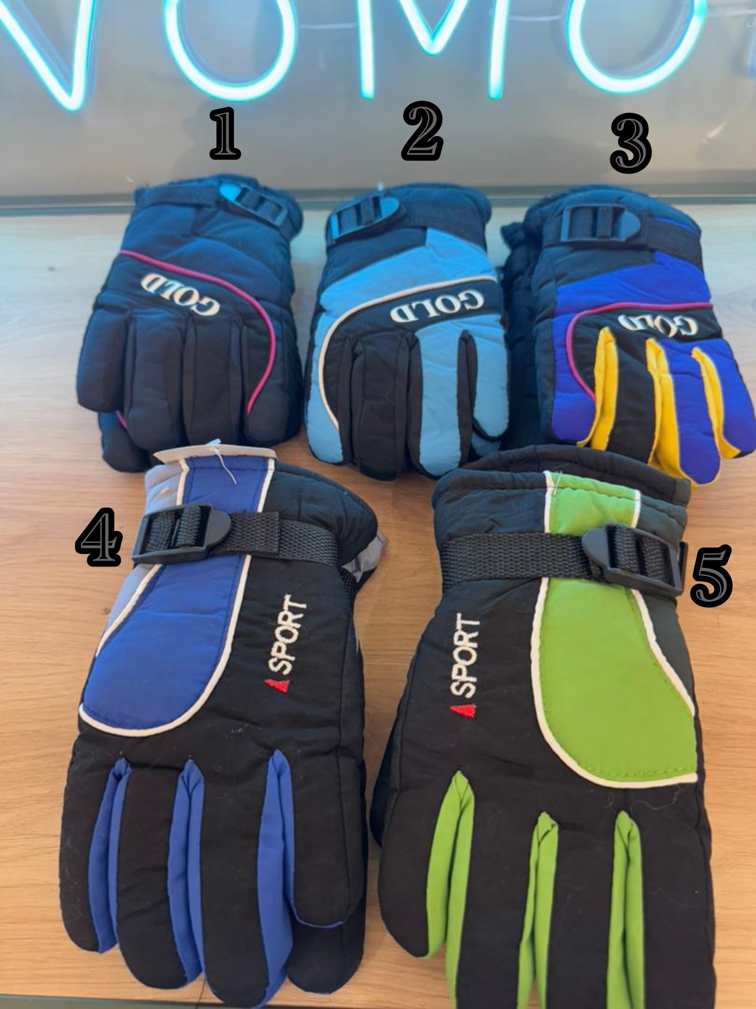 دستکش پسرانه زمستانی ضدآب و اسکی در رنگ‌های متنوع مناسب برای سرما و ورزش‌های زمستانی.