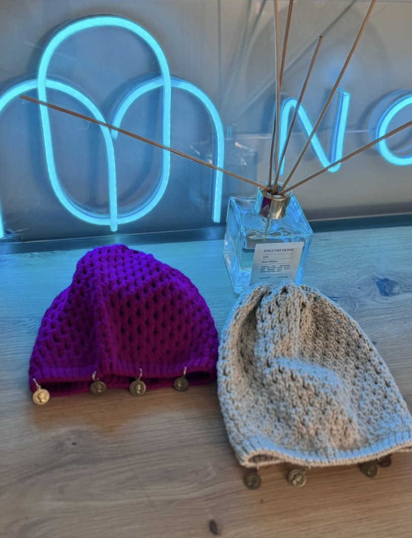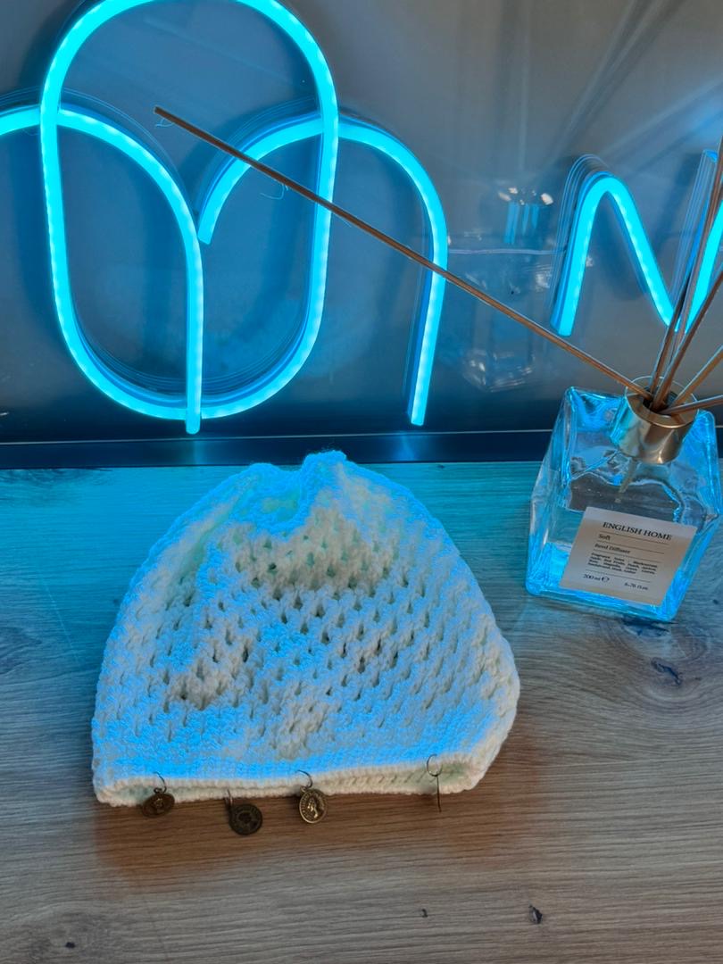قلاببافیشده که بافت آن بهصورت سوراخدار و شبکهای طراحی شده. این سبک کلاه بهخاطر بافت باز و سبکش، هم حالت فانتزی و هنری دارد و هم برای استفاده در روزهای بهاری و پاییزی مناسب است؛ چون کمی گرما ایجاد میکند ولی بهخاطر عبور هوا، حس خنکی هم میدهد. شکل این کلاه بهطور کامل سر را میپوشاند و لبهای ندارد، که باعث میشود استایل آن ساده و مینیمال باشد و به راحتی با لباسهای روزمره یا استریتاستایل ست شود.